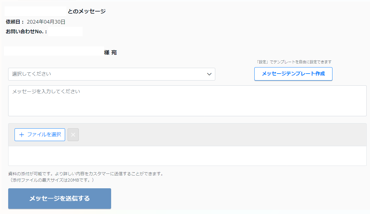 ②「メッセージを送る」をクリックし、メッセージ入力画面に遷移する。