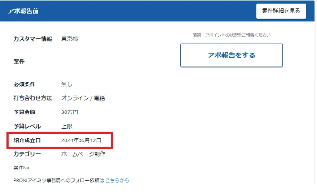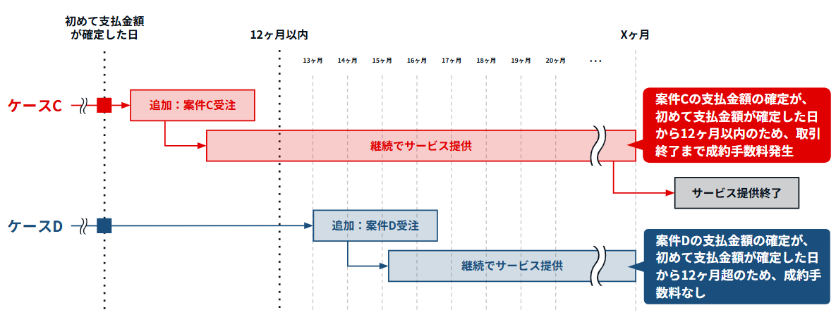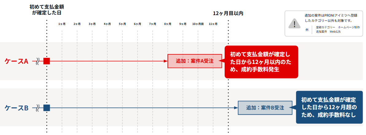 ・追加受注は初回案件の請求書発行日から12ヶ月以内は成約手数料の対象となります。