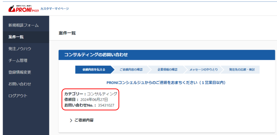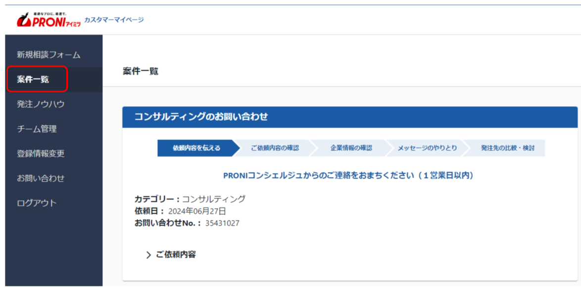 ②案件一覧から追加紹介を希望する問い合わせを確認する