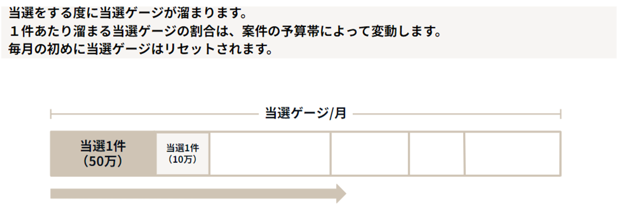 - 想定予算の高い案件は当選ゲージの消化率が高くなります。