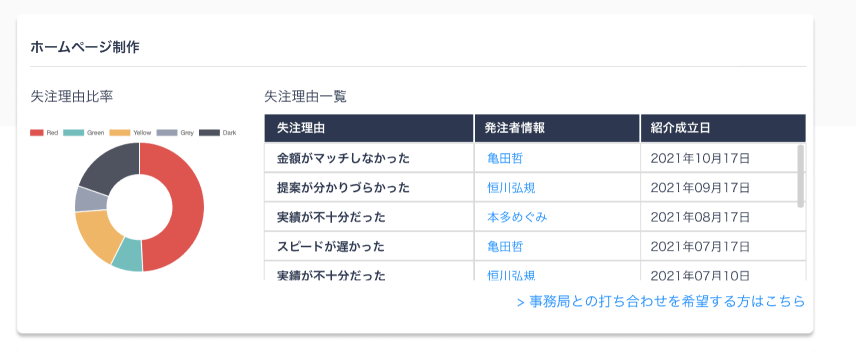 成約に向けてアクションを改善するために、失注案件におけるカスタマーからのお断り理由を表示します。
