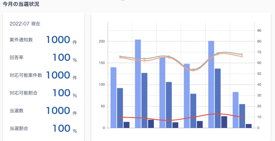 ・当選割合 :対応可能件数に対する当選の割合を表示します。