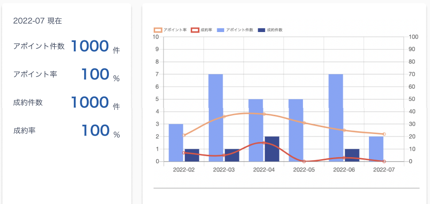 ・アポイント率 :当選数に対するアポイント件数の割合を表示します。