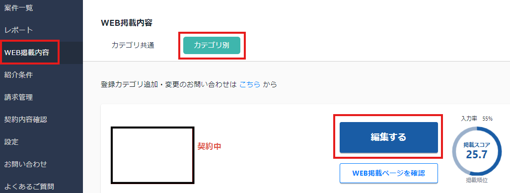 2 変更したいカテゴリについて「紹介条件の確認と変更」をクリック